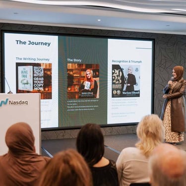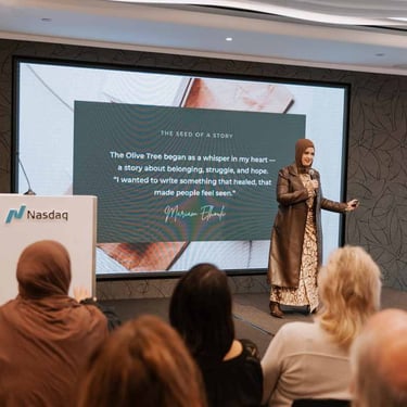 Catch up Mariam Elhouli the author of The Olive Tree invited by NASDAQ, NY USA. Engaging over various topics from Women Empowerment, to Identity, equality and equity. Looking forward to a better future. Humanity above everything else,